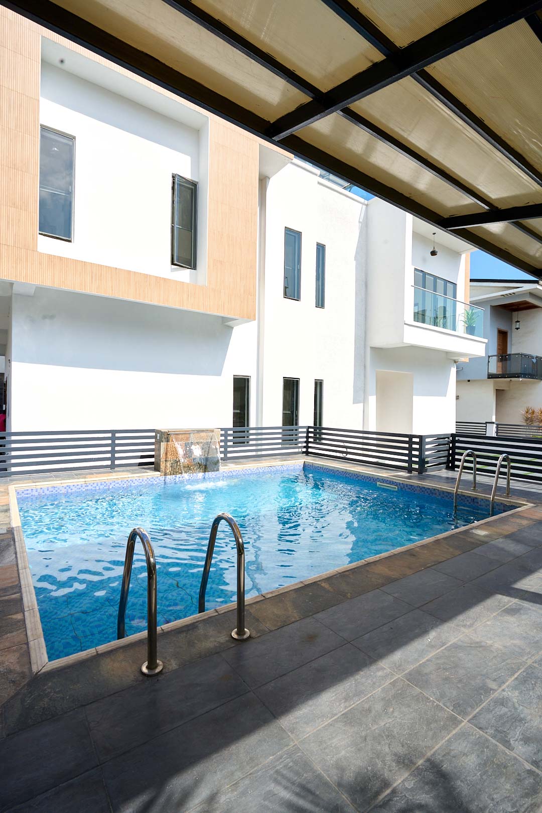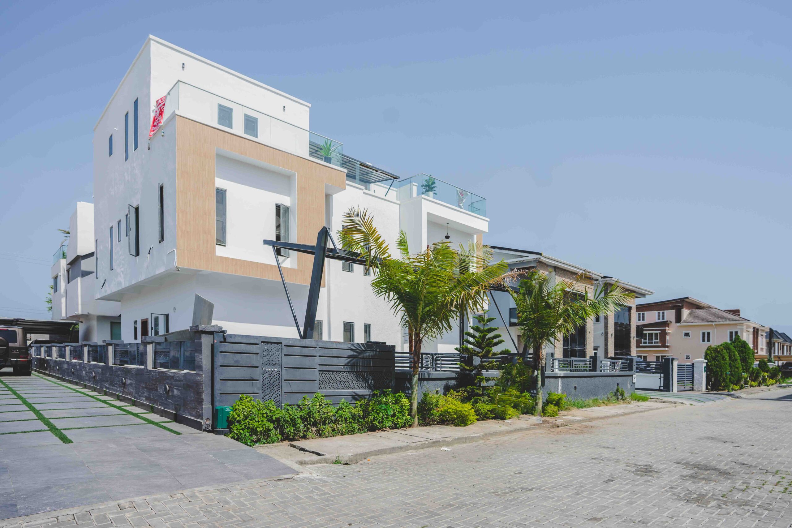Located in Victory Park Estate, Osapa London, Lekki. This 5-bedroom all-ensuite duplex with a study sits on a sizeable land. The property features a modern kitchen, fitted wardrobes, a private swimming pool, and an in-house cinema. With balcony views, CCTV surveillance, and estate-wide security, it delivers an upscale blend of luxury and exclusivity.